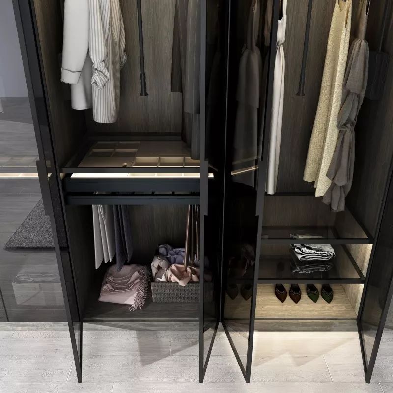 这样一个功能区划分明显、又轻奢感十足的玻璃平开门定制衣柜你还在犹豫吗。