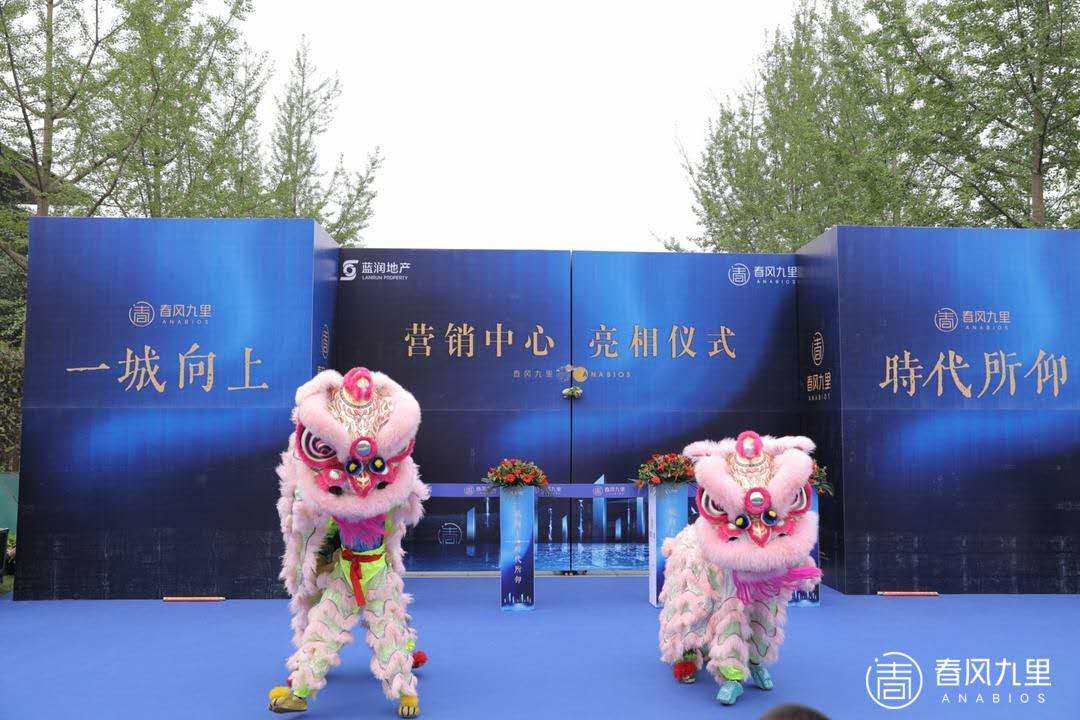 伴随着铿锵有力的锣鼓声,寓意吉祥的祥狮漫入宾客眼帘。精彩的醒狮点睛、采青表演,赢得现场掌声不断。在全场热烈的掌声中,蓝润地产相关领导共同完成剪彩仪式,蓝润·春风九里营销中心正式开放,掀开美好序言。