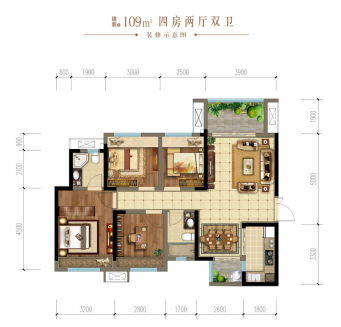 建筑面积约93-109m²热门户型