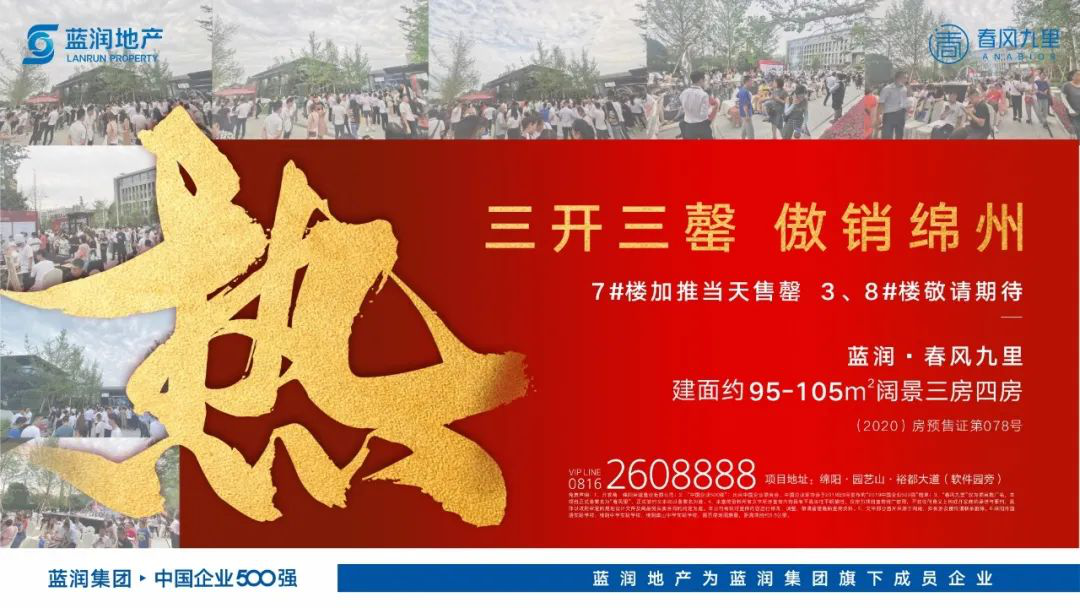 2020年5月30日,位于绵阳园艺山的蓝润·春风九里,在市场和客户的翘首期待下迎来盛大首开。现场人头攒动,氛围火热爆棚,购房者对心仪的房源势在必得。1小时所推房源全部售罄,创下绵阳楼市销售新传奇!