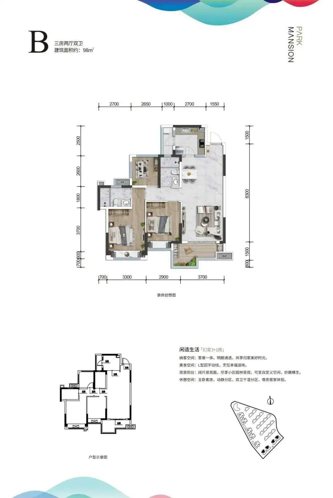 免责申明:本广告仅为要约邀请,所载全部内容仅供参考,均不构成要约,一切以双方签订的商品房买卖合同及其附件约定及政府最终审批文件规定为准。广告中所涉相同户型因地势、位置、楼栋、朝向、楼层、单元、房号等差异,局部外观、结构、管道、尺寸、面积等可能不同,实际以交付及房屋竣工验收后房产部门认可的实测面积为准。本户型图所示的装修、家具、电器、设备等仅供示意,非交付标准。本广告所载装修鉴赏图仅为装饰装修的概念性示意,所示尺寸均为轴线尺寸,仅供参考,若需达到装修鉴赏图效果须由买受人自行或委托第三方依法进行装修改造。装修鉴赏图、户型示意图仅系对买卖商品房空间、结构的示意,均非对拟买卖商品房专有部分范围的准确表达,最终以买卖双方签订的商品房买卖合同以及合同约定附图为准。项目推广案名:公园府。政府核准备案名:公园府。开发商:绵阳锦筑置业有限公司。预售许可证号:(2020)房预售证第098号。本公司保留对此广告修改的权利,敬请留意最新广告。资料制作时间为2020年8月31日。