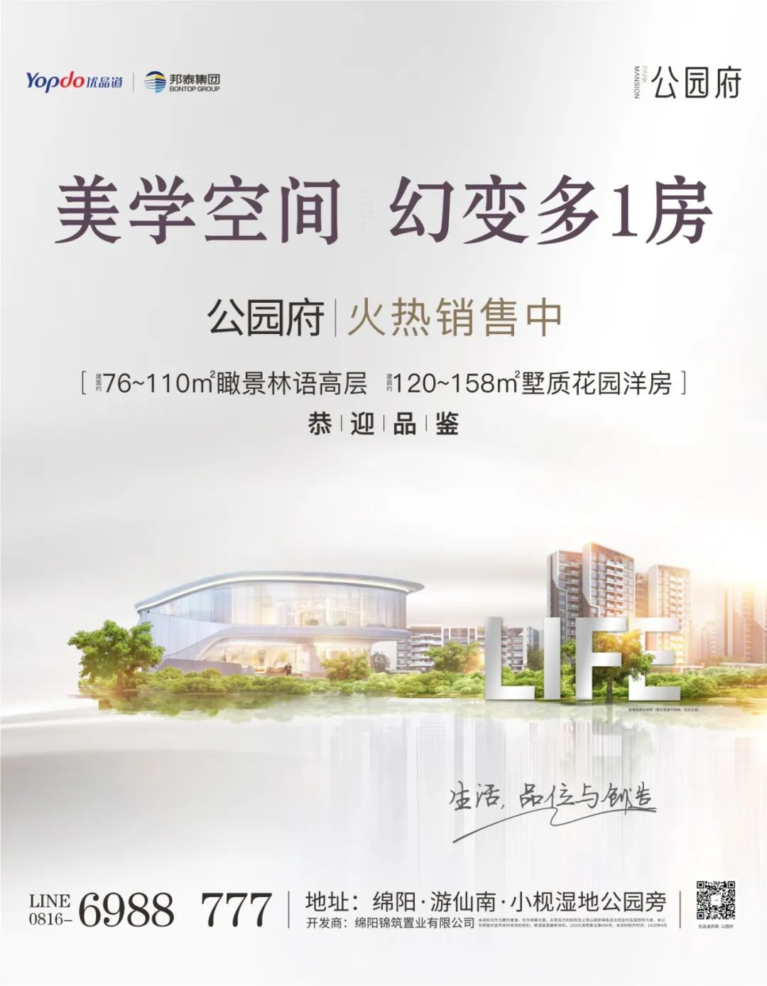 2020年,优品道集团携手邦泰集团,在洞悉城市抱负之际,以“城市进化先行者”之姿,秉承“创造品位生活”的使命,以[公园府首入绵阳,联袂抒写绵阳城南新区理想人居的新篇章。