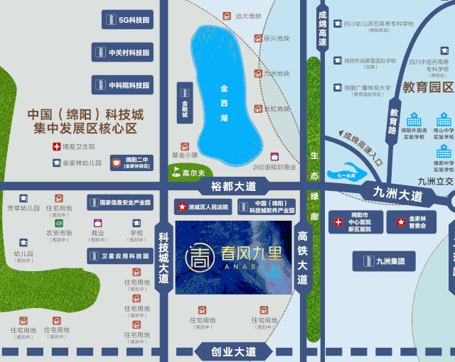 蓝润·春风九里择址绵阳科技城集中发展区核心区——金家林,紧邻软件园,抢占城市发展高地,与区域擘画理想新“蓝”图。