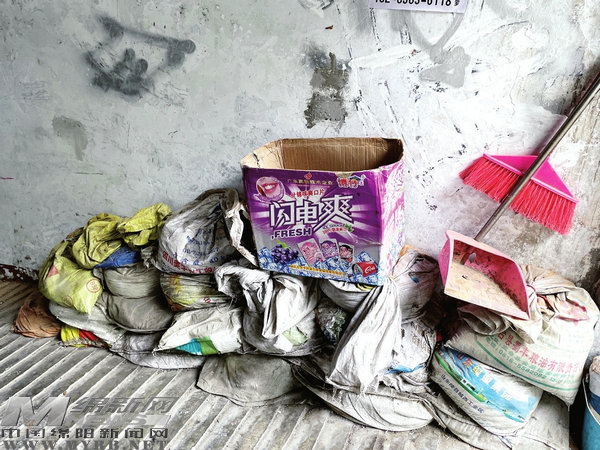 在涪城区兴达街附近的恒宣物业公司内设停车场,记者看到停车场门口堆放了少量沙袋,手电筒、雨衣等防汛物资分散摆放。物业工作人员称:“每到下雨都在找这些东西”。
