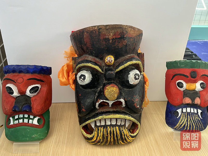 在文旅服务业展区,表情夸张的曹盖面具、手工制作的白马毡帽以及历史悠久的跳曹盖舞蹈吸引一大批东莞市民驻足观看。