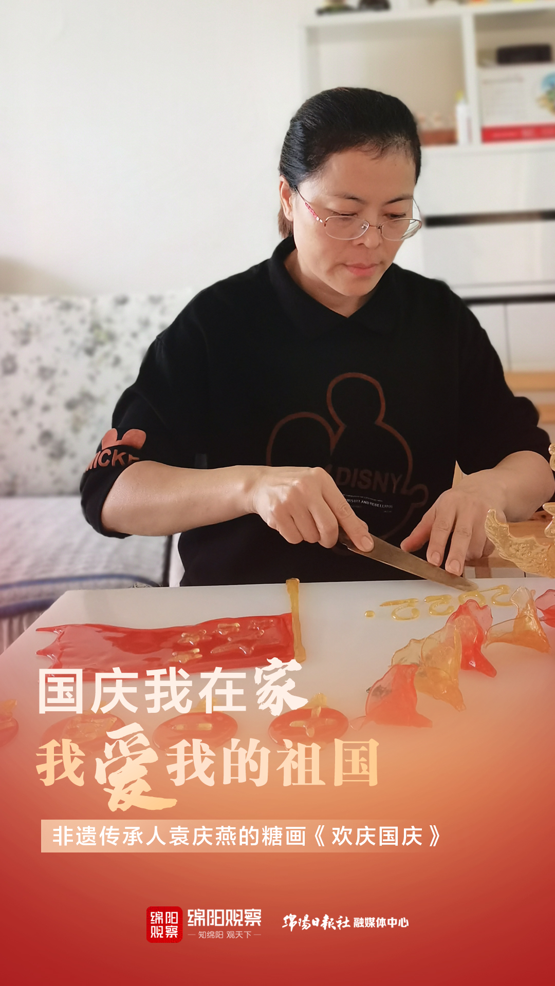 “绵阳人是勇敢、坚强、浪漫、激情的人民,一定会团结一致打赢这场抗疫之战!”糖画非遗传承人袁庆燕创作了《欢庆国庆》,用甜蜜的艺术祝福祖国。