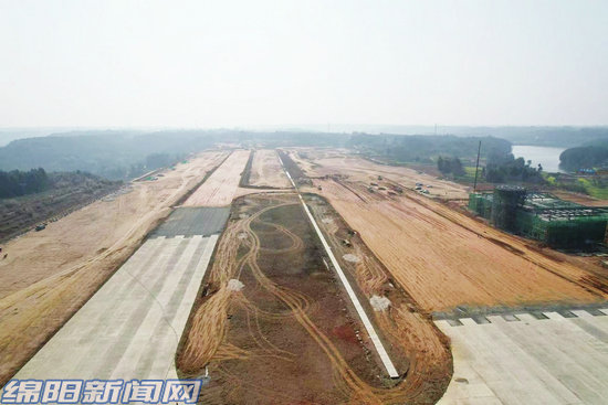 绵阳新闻网讯 近日,中国科技城(北川)通航产业园内的北川通用机场项目现场,挖掘机、铲车、物料车等来回穿梭,压路机反复碾压着已经铺好的土石料,热火朝天的施工景象扑面而来。