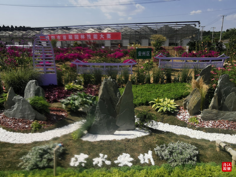在花境布置环节,各队更是脑洞大开,亮出绝活儿:安州的姊妹桥园林造景,平武的大熊猫“秘境家园”,游仙创造性的以“溪韵”为主题,取芙蓉溪穿城之意,搭配景观造型与不同色调绿植,呈现出一幅“河畅水清、岸绿景美、业兴人和”的公园城市美景。别出心裁的仙海,将“园林”版的仙海湖整体搬至现场,用现代园艺技术营造出湖光山水的飘渺仙境……