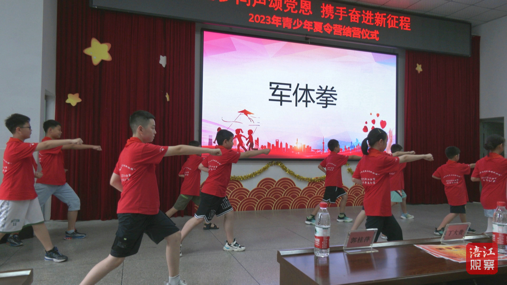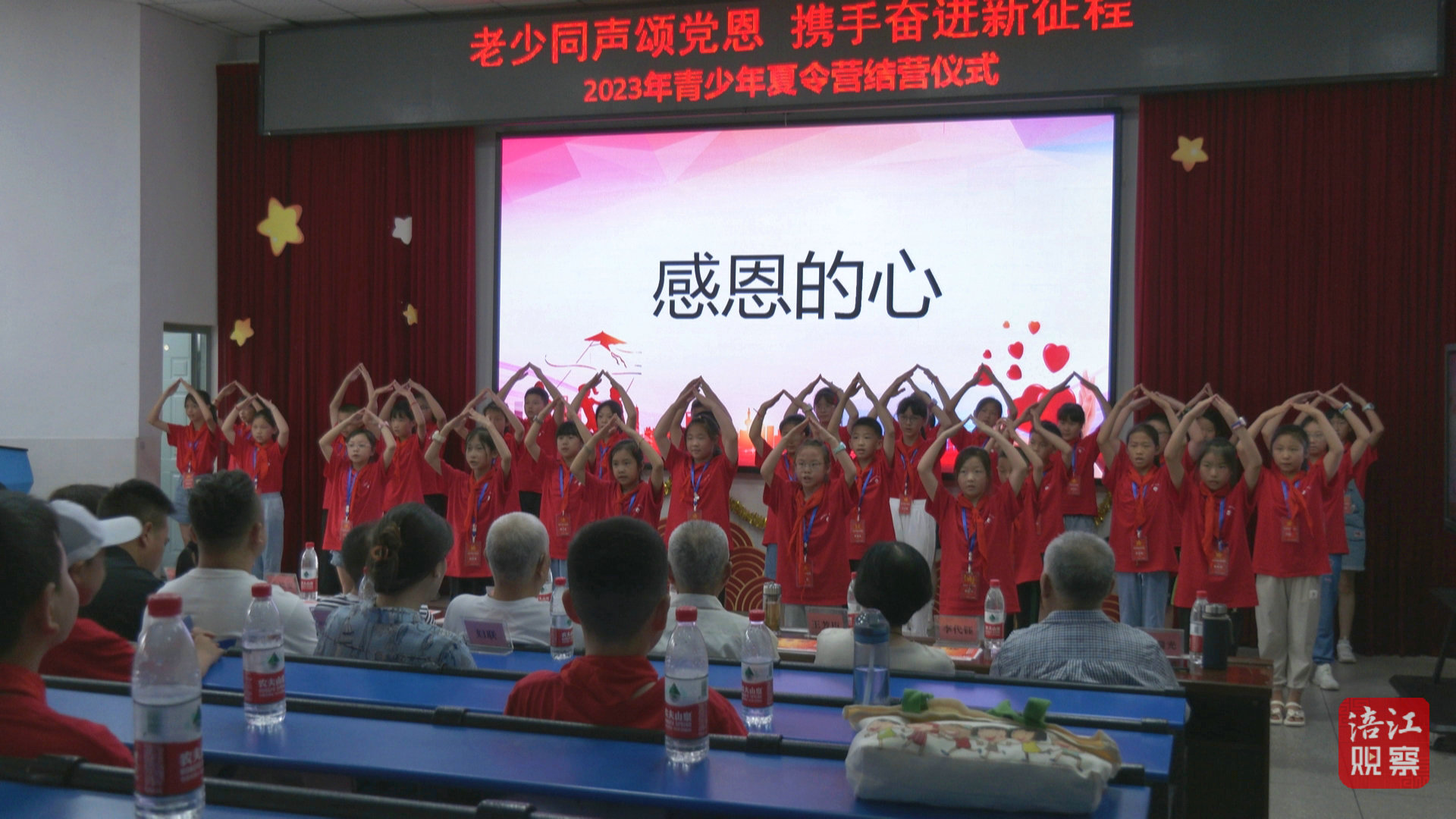 闭营仪式上,主办方邀请了学生家长通过观看本次夏令营活动回顾片,共同回顾了5天的夏令营生活:从红色基地的寻访到李白文化的熏陶,从本土企业文化的体验到乡村振兴的感悟,丰富了孩子们的暑期生活,也提高了他们的身体素质,搭建起展示了自我风采的良好平台。
