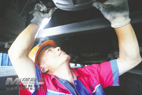绵阳新闻网讯 8月7日11时许,市公交集团四总站圣水发车点,烈日炙烤,地面滚烫。场站维修点,两名公交维修工人忙得不可开交。