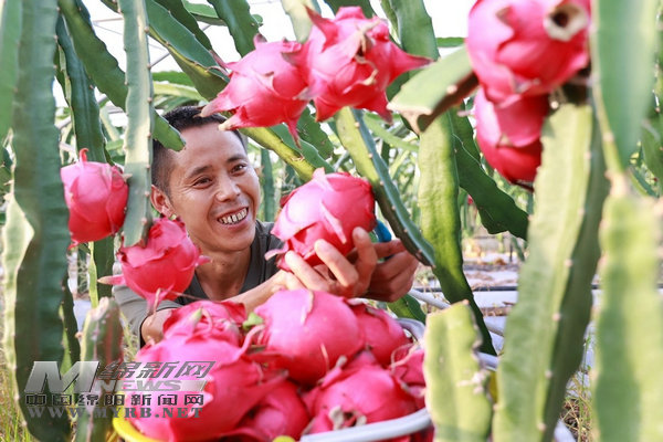 “火龙果树一年可以结果四次,目前正是收获的季节,每天都有大量的市民前来采摘。”姊妹农场主董加亮介绍,自己从2019年开始种植火龙果,目前种植面积达到40多亩,带动了当地村民灵活就业,增收致富。 (绵报融媒记者 陈冬冬 摄)