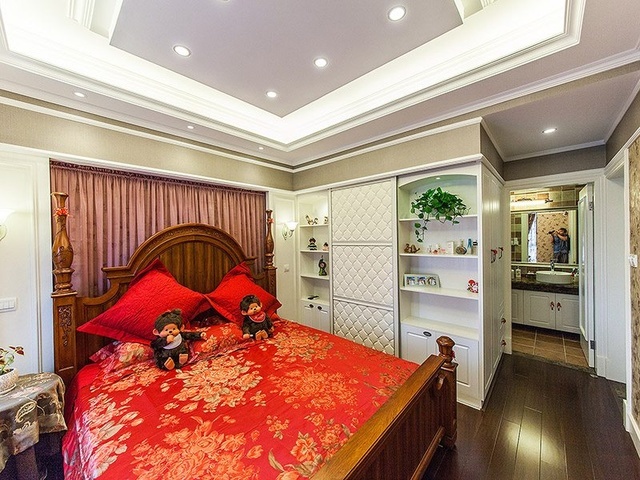 以功用性和有用舒适为考虑的要点,卧室选择柔和的色彩,在温馨中也充分考虑空间的使用。